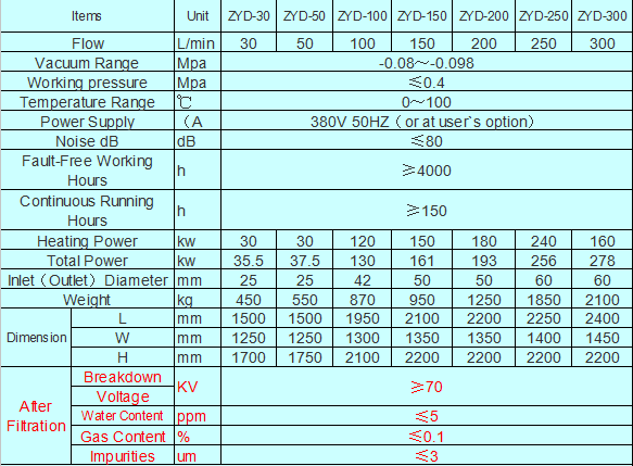 3.Being able to remove the trace moisture and various gas in the oil rapidly,  ensure zero acetylene existence in the oil. ZYD double stage transformer oil purifier has vacuum oil filling and vacuum drying function.